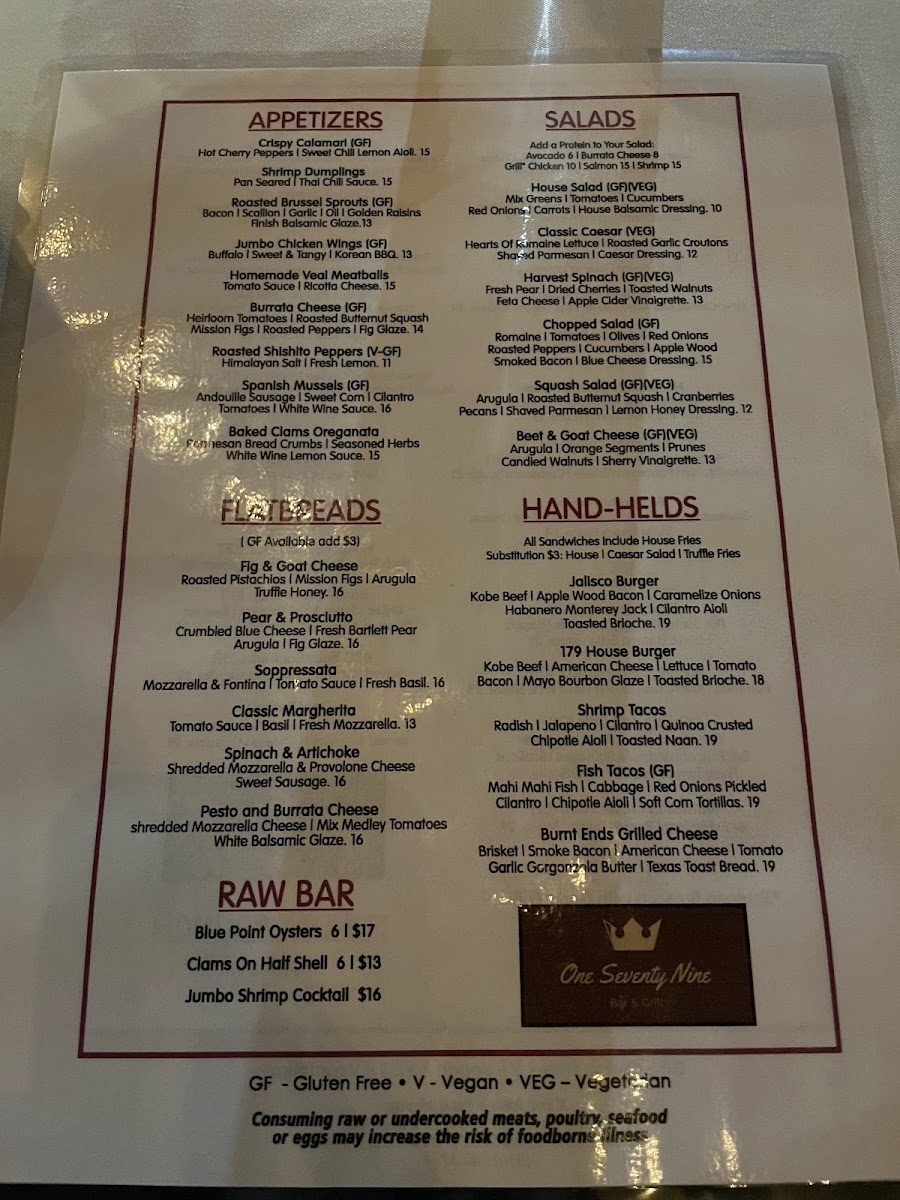 179 BAR AND GRILL Menu (Update 2025)